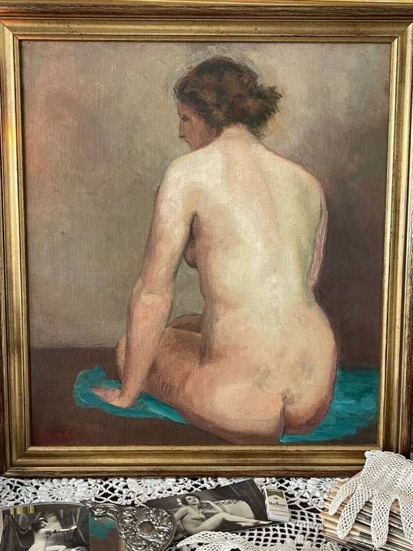 Tableau "Nu féminin assis" par D. Biske, Suède