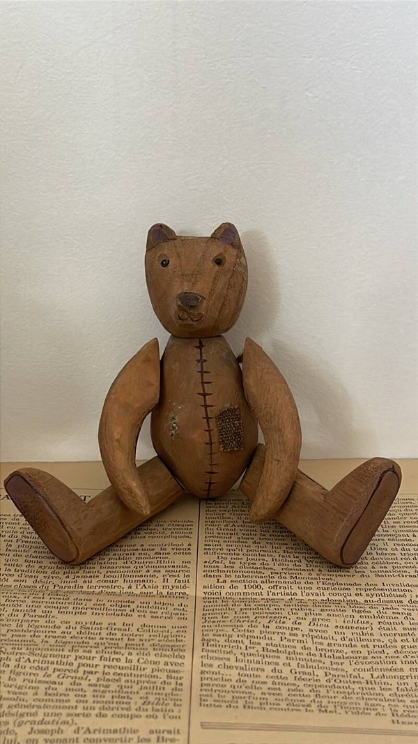 Ourson ancien articulé – Bois sculpté à la main – Allemagne – 17 cm