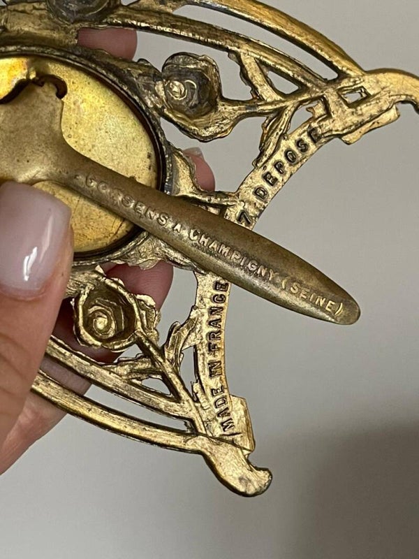 Au dos, l'inscription « Gorsans à Champigny (Seine) » témoigne de son origine française et de son authenticité. Le numéro « 27 déposé » indique qu'il s'agit d'un modèle protégé.