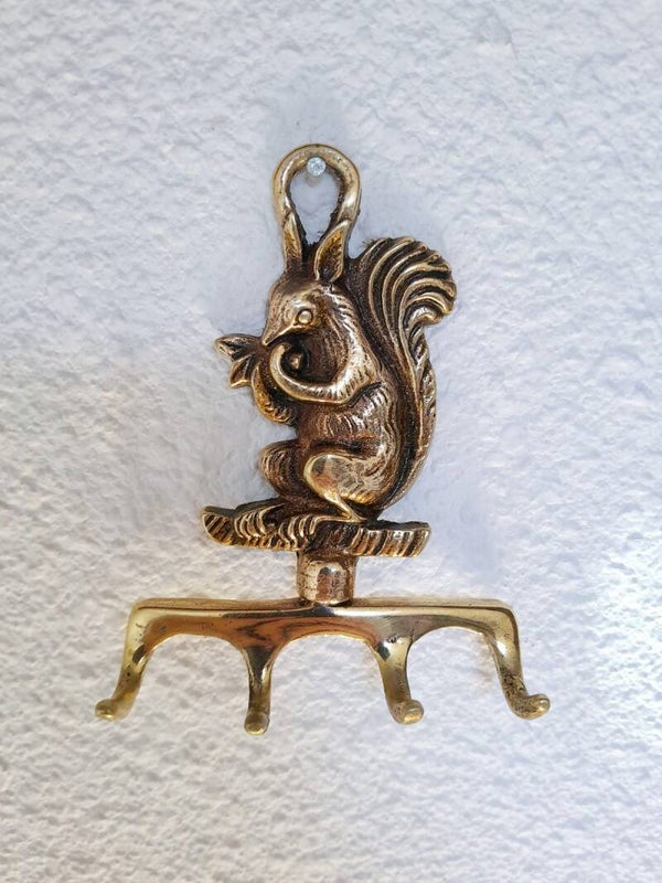 Accroche-clés mural en laiton doré – motif écureuil champêtre