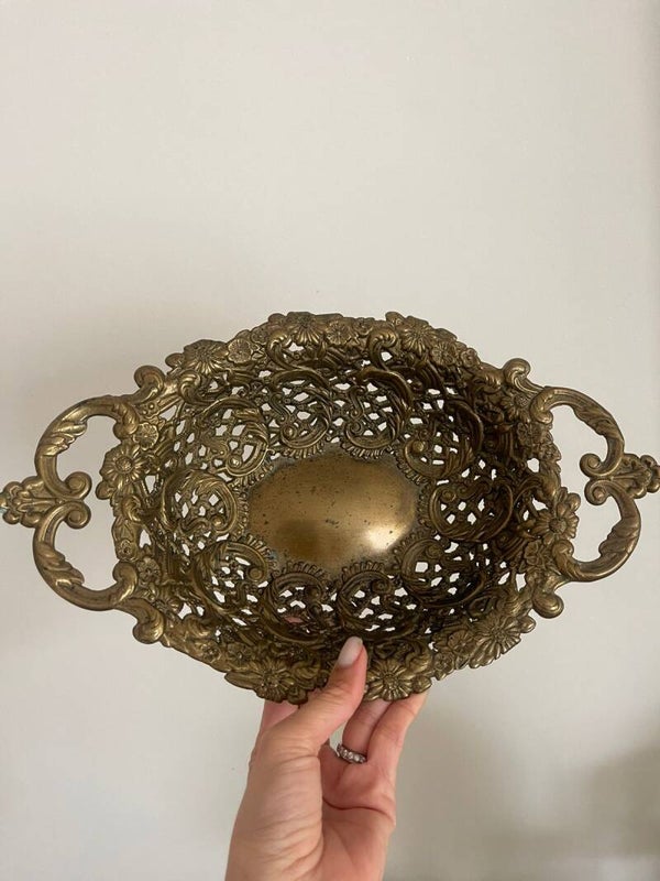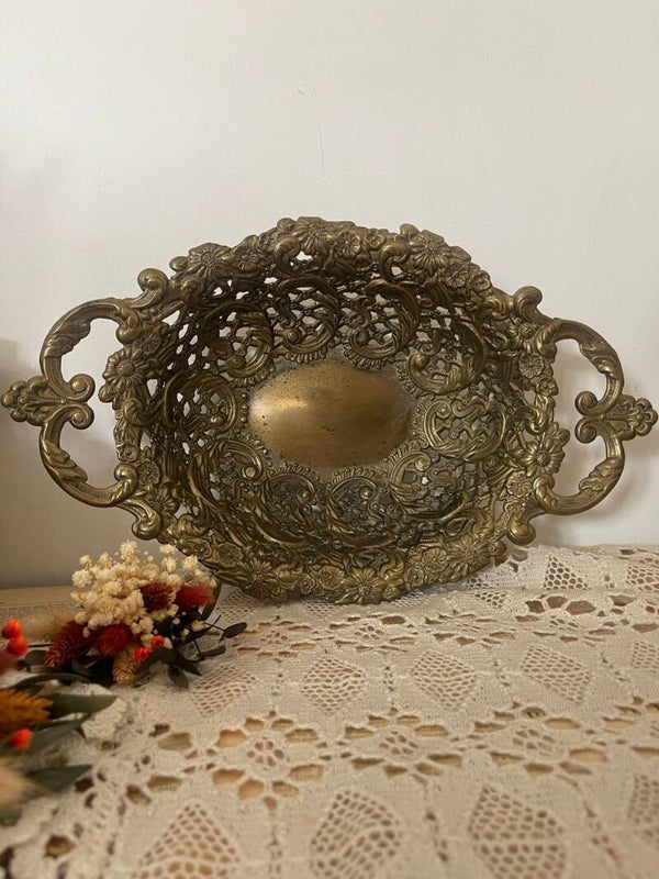 Voici une corbeille qui ne se contente pas d’être utile, mais qui rayonne, tout simplement. En laiton doré, généreusement travaillée, elle marie avec grâce les courbes du style rococo à la prestance baroque. Chaque détail semble ciselé à la main, des bords finement recourbés jusqu’aux flancs décorés de feuilles de lys élégantes et élancées.