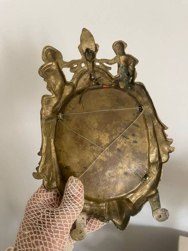 Petit miroir en laiton aux chérubins – style éclectique fin XIXe