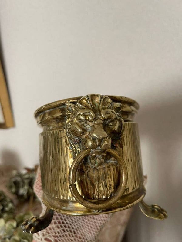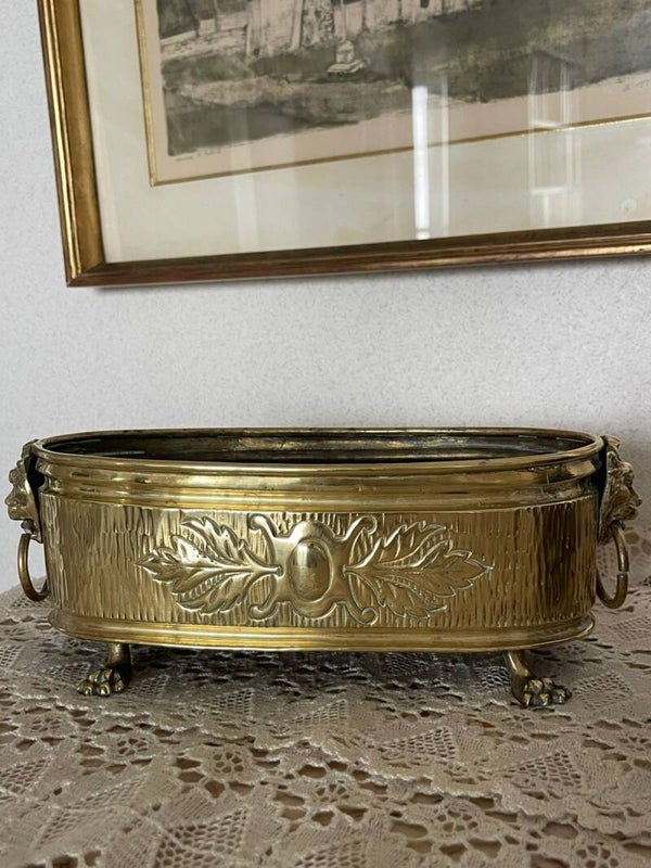 Jardinière ancienne en métal doré, élégance royale aux pattes de lion
