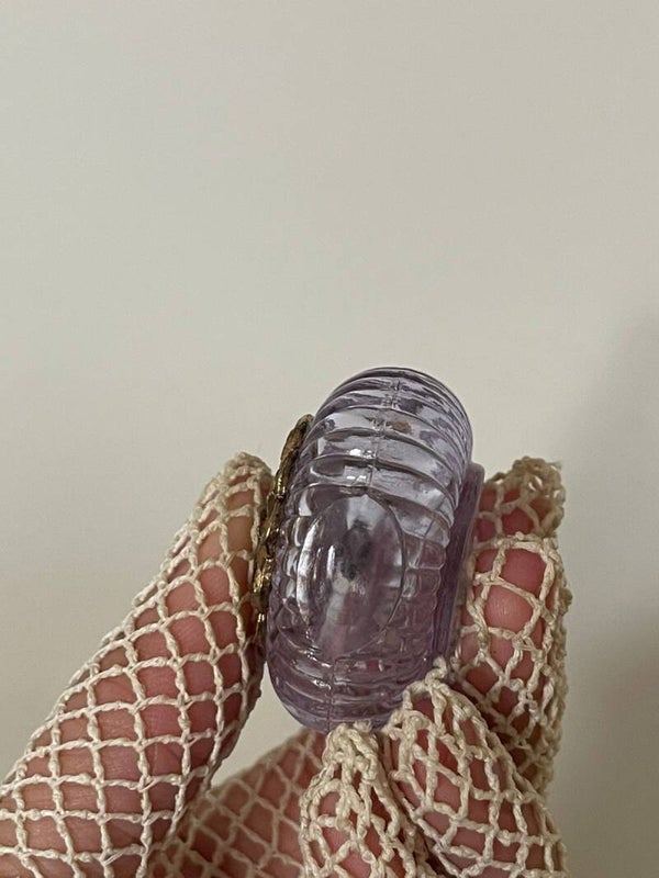 Ce ravissant trio de flacons de parfum vintage semble tout droit sorti d’un boudoir de Bohême, là où le verre et la lumière dansent ensemble depuis des siècles. Avec leur silhouette arrondie finement nervurée et leur décor en métal ajouré — dit filigree — ces pièces évoquent les créations de verriers tchèques destinées à l’export dans les années 1920 à 1950.