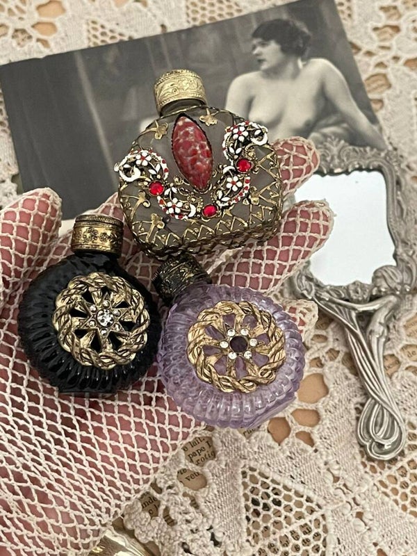 Lot de trois flacons de parfum vintage – décor filigree bohème